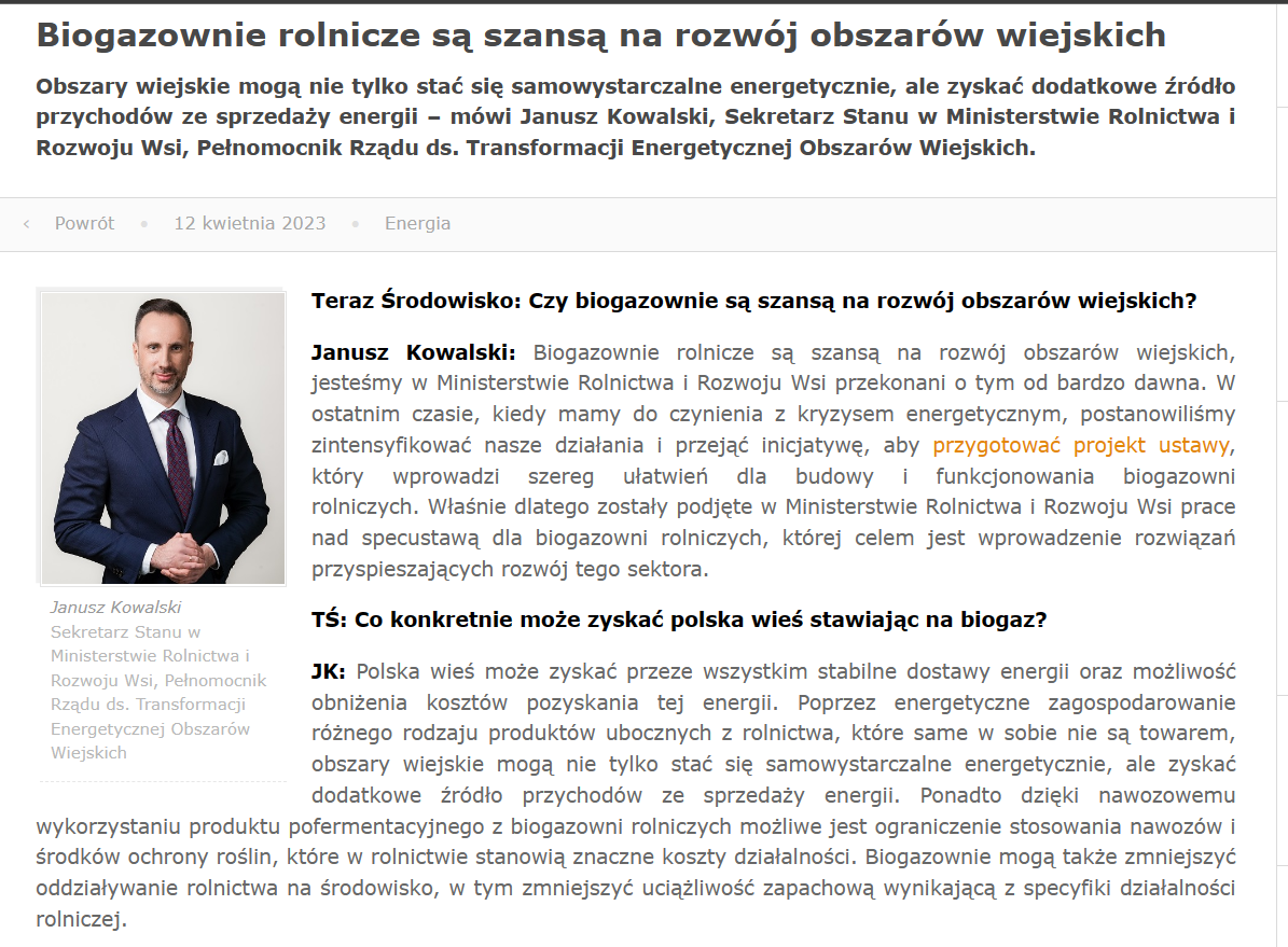 Stanowisko w tej sprawie wyraził Sekretarz Stanu w Ministerstwie Rolnictwa i Rozwoju Wsi, Pełnomocnik Rządu ds. Transformacji Energetycznej Obszarów Wiejskich- Janusz Kowalski.