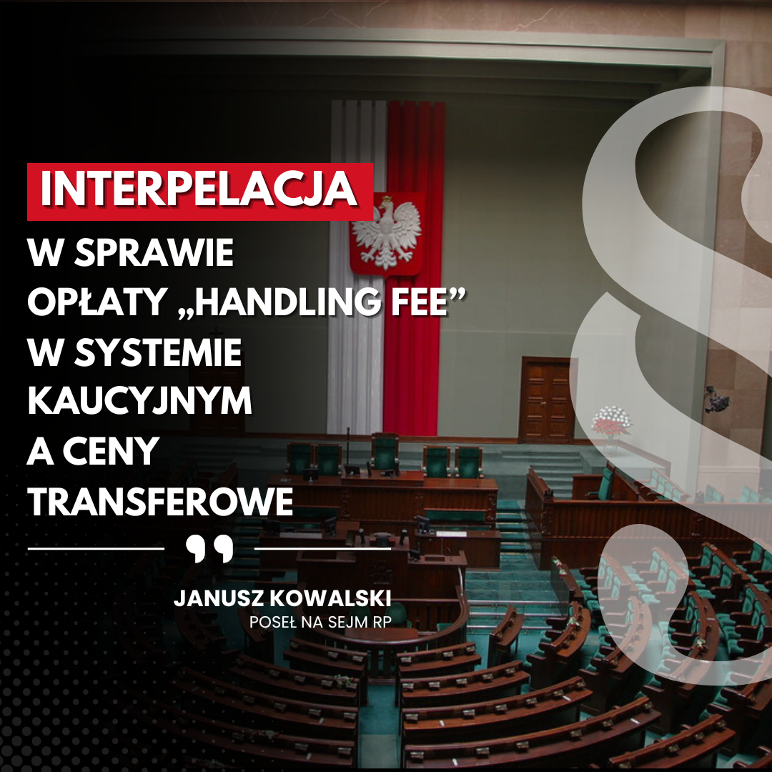 Interpelacja posła Janusza Kowalskiego z dnia 8 października 2025 roku w sprawie wątpliwości dotyczących opłat handling fee w systemie kaucyjnym oraz ich potencjalnego objęcia przepisami o cenach transferowych.