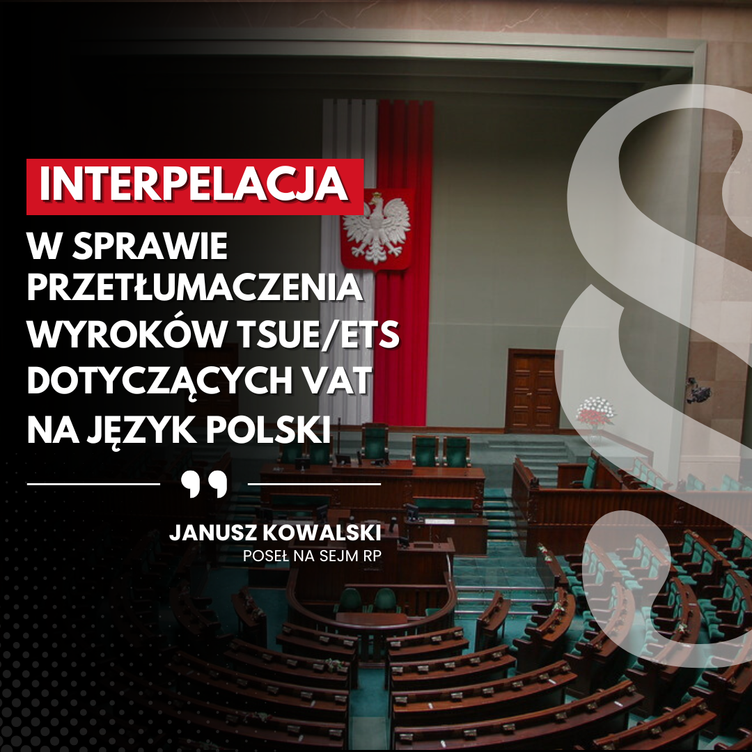 Interpelacja posła Janusza Kowalskiego z dnia 25 lipca 2025 roku w sprawie postulatu przetłumaczenia wszystkich wyroków TSUE/ETS dotyczących VAT na język polski.