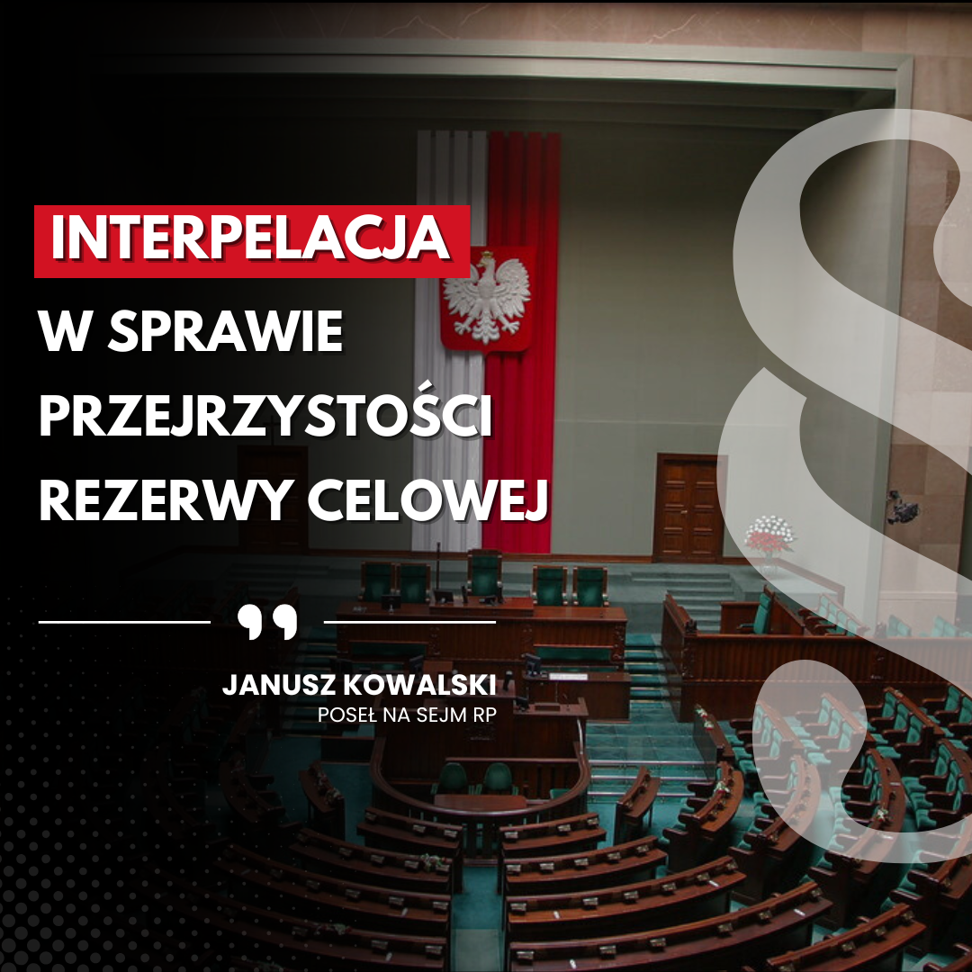 Interpelacja posła Janusza Kowalskiego z dnia 25 czerwca 2025 roku w sprawie przejrzystości rezerwy celowej na realizację projektów współfinansowanych z udziałem środków pochodzących z budżetu UE oraz ze środków pomocy bezzwrotnej, rozliczenia programów i projektów finansowanych z udziałem tych środków, a także rozliczenia z budżetem ogólnym Unii Europejskiej.