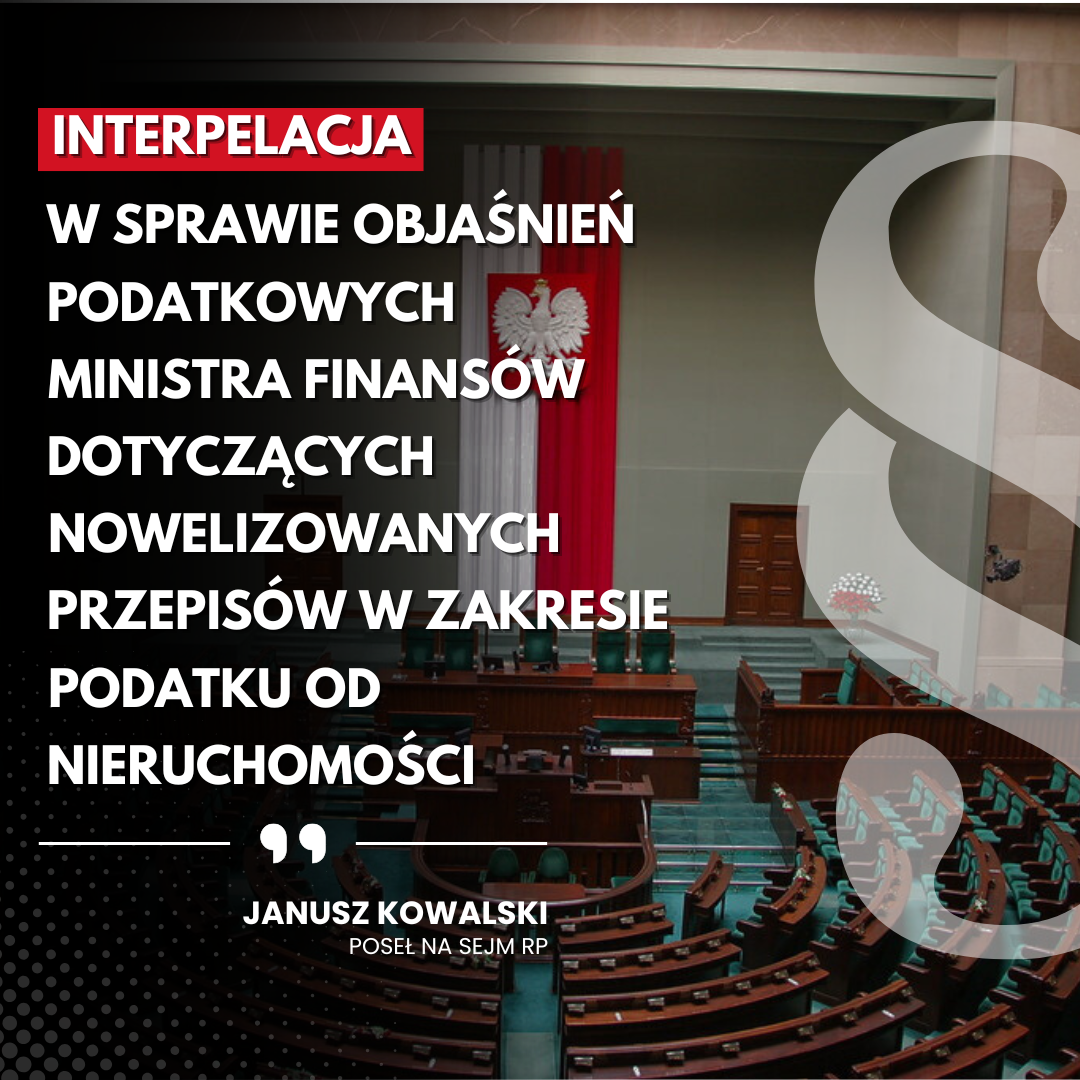 Interpelacja posła Janusza Kowalskiego z dnia 28 listopada 2024 w sprawie objaśnień podatkowych ministra finansów dotyczących znowelizowanych przepisów w zakresie podatku od nieruchomości