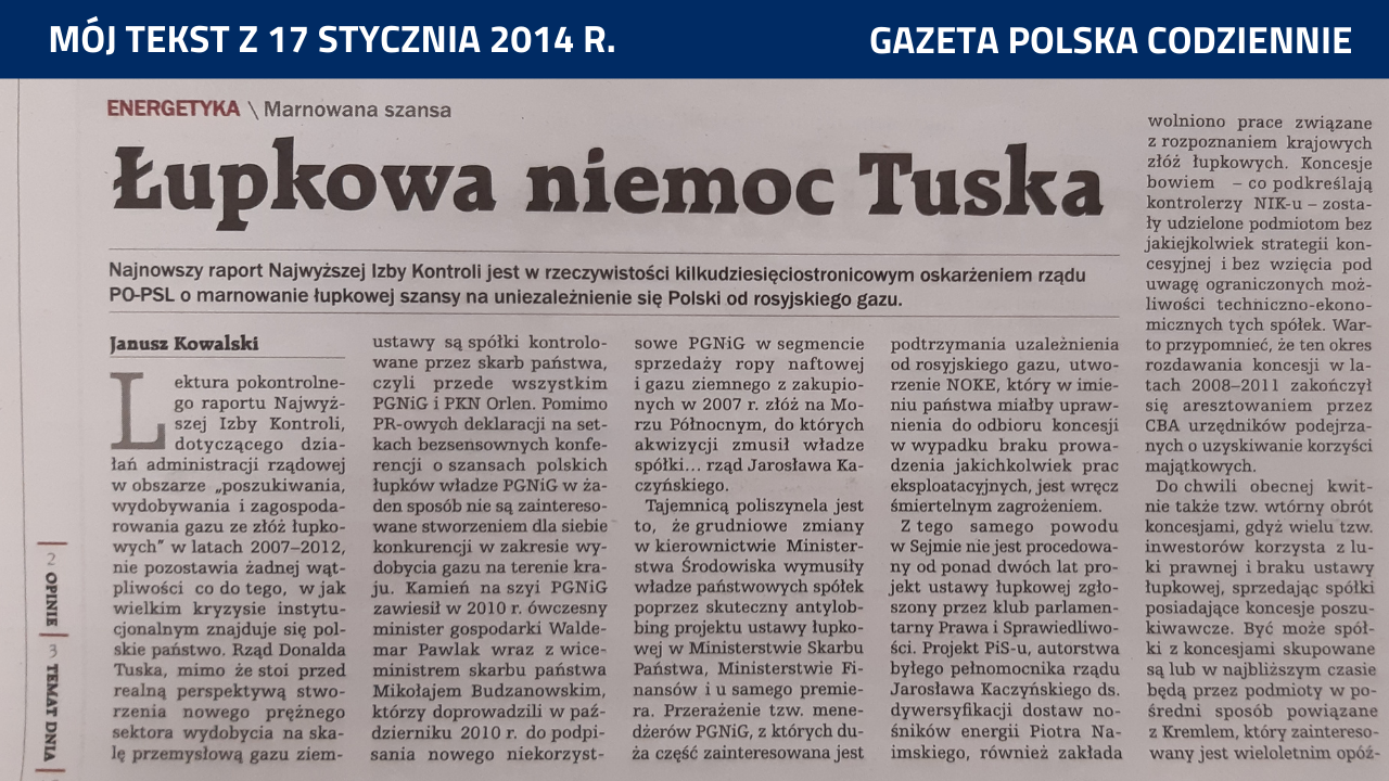 Tekst mojego autorstwa, który ukazał się w Gazecie Polskiej Codziennie 17 stycznia 2014 r.