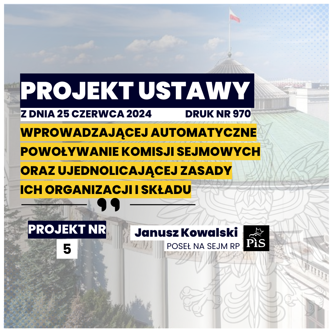 25 czerwca 2024 r. Klub Parlamentarny Prawa i Sprawiedliwości z inicjatywy posła Janusza Kowalskiego złożył w Sejmie projekt ustawy o zmianie ustawy o sejmowej komisji śledczej.