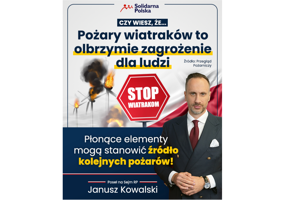Poważne zagrożenie stanowią płonące elementy gondoli i łopat, które z wiatrem przenoszone są na duże odległości i mogą stanowić źródło kolejnych pożarów.