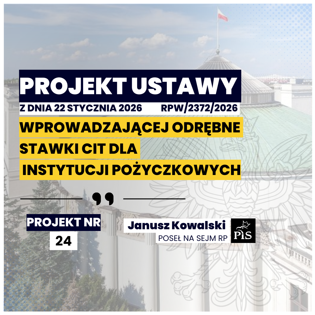 22 stycznia 2026 r. Klub Parlamentarny Prawa i Sprawiedliwości z inicjatywy posła Janusza Kowalskiego złożył w Sejmie projekt ustawy o zmianie ustawy o podatku dochodowym od osób prawnych.