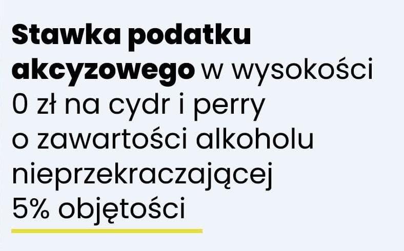 Stawka podatku akcyzowego w wysokości 0 zł na cydr i perry o zawartości alkoholu nieprzekraczającej 5 % objętości