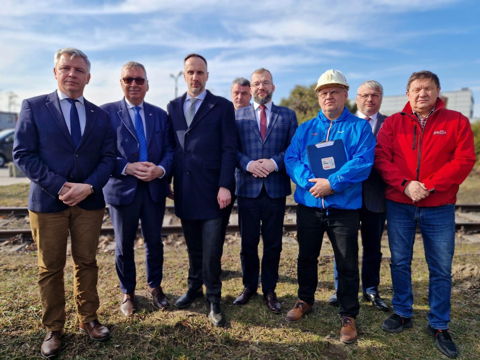 Konferencja prasowa posła Janusza Kowalskiego, Marka Wesołego, Grzegorza Gaża, Przemysława Drabka, Stanisława Szweda i Grzegorza Pudy przed pikietą NSZZ Solidarność przed kopalnią Silesia w Czechowicach-Dziedzicach 10 marca 2025 r.