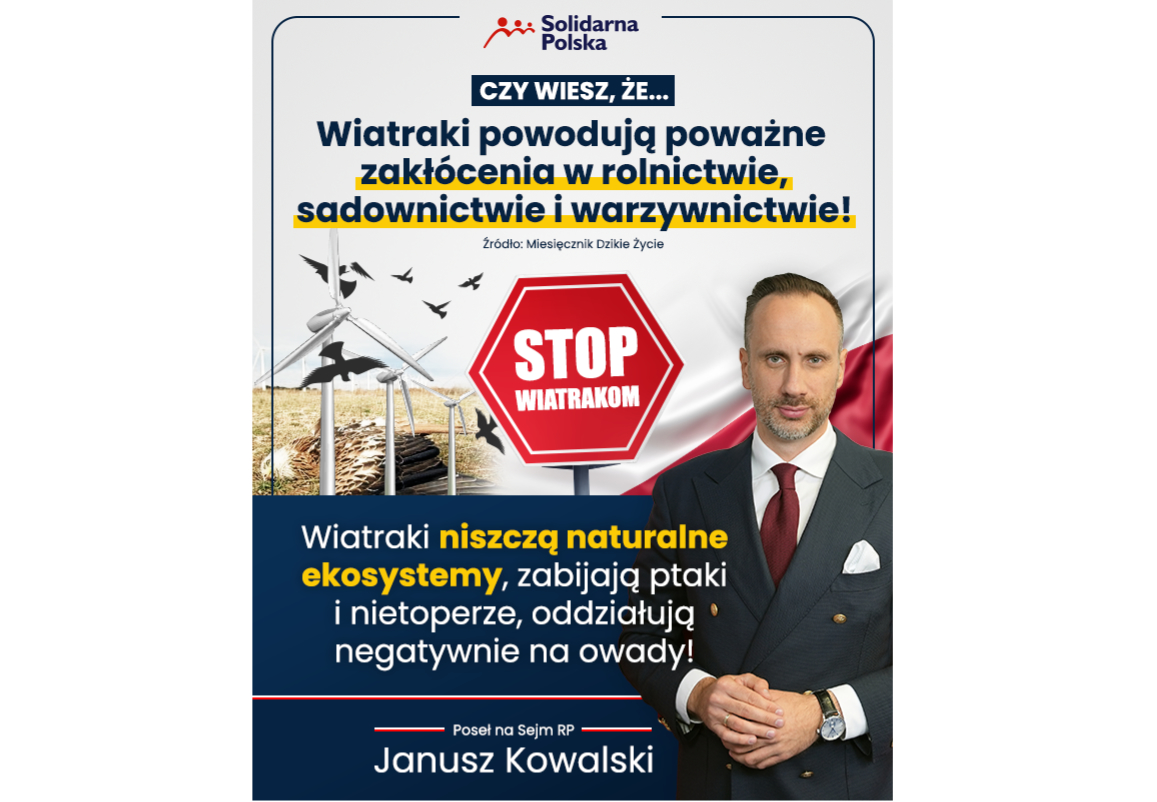 Wiatraki mają szkodliwe oddziaływanie na środowisko.