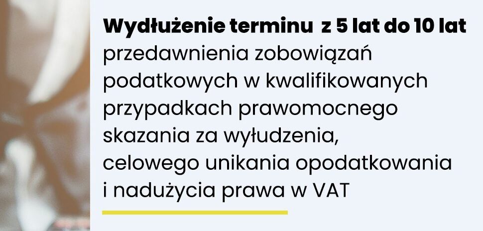 Wydłużenie terminu z 5 lat do 10 lat przedawnienia zobowiązań podatkowych w kwalifikowanych przypadkach prawomocnego skazania za wyłudzenia, celowego unikania opodatkowania i nadużycia prawa w VAT.
